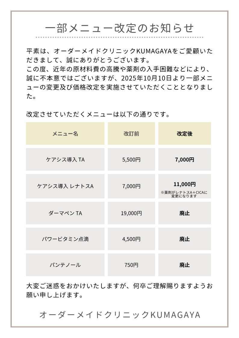 平素は、オーダーメイドクリニックKUMAGAYAをご愛顧いた
